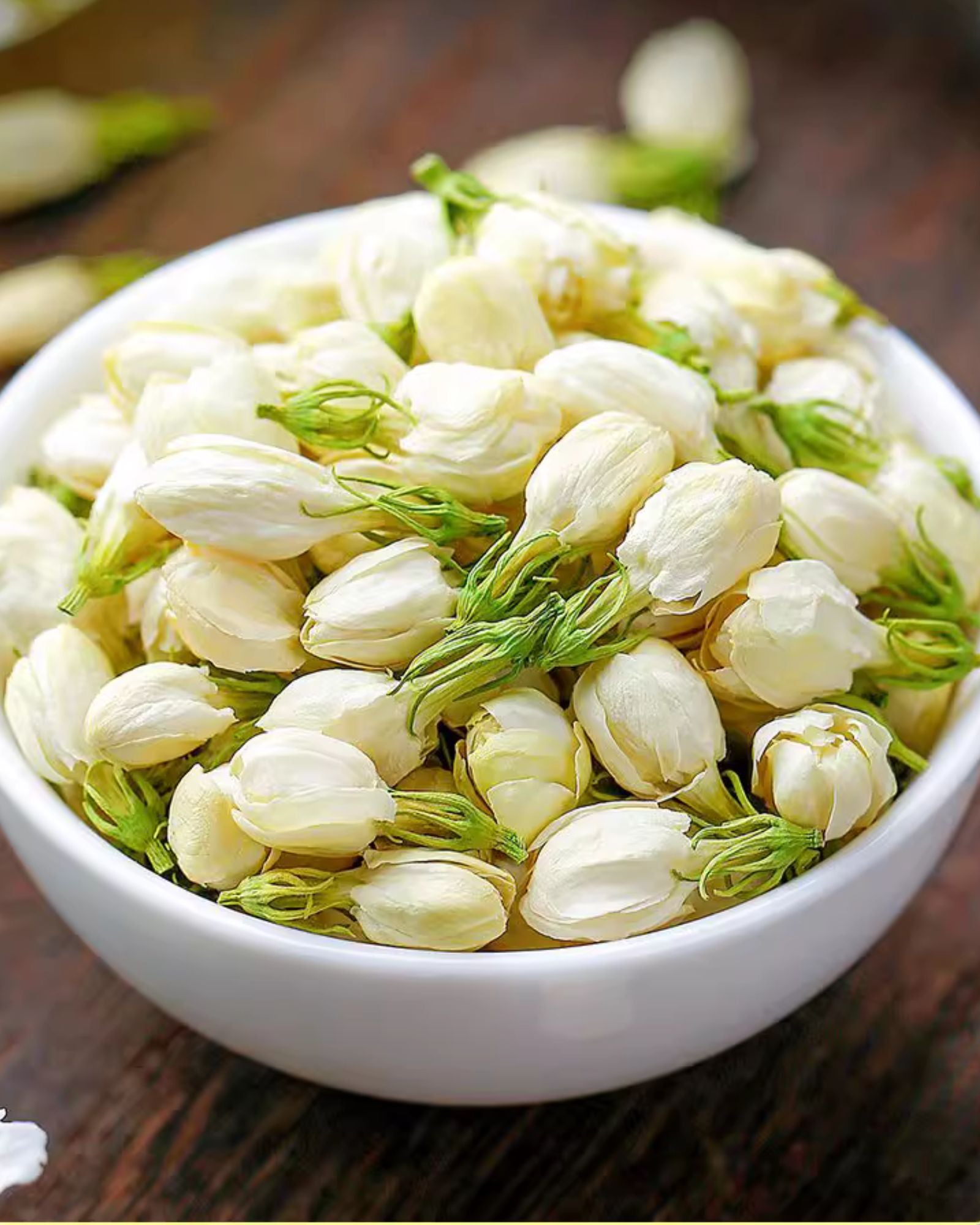 Jasmine flowers have mild carminative properties that help reduce bloating and digestive discomfort often experienced during hormonal fluctuations. This complements the action of lotus leaf for comprehensive digestive support.